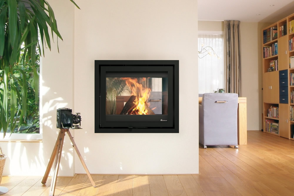 – Corps en acier et porte en verre sérigraphié, chambre de combustion en vermiculite
